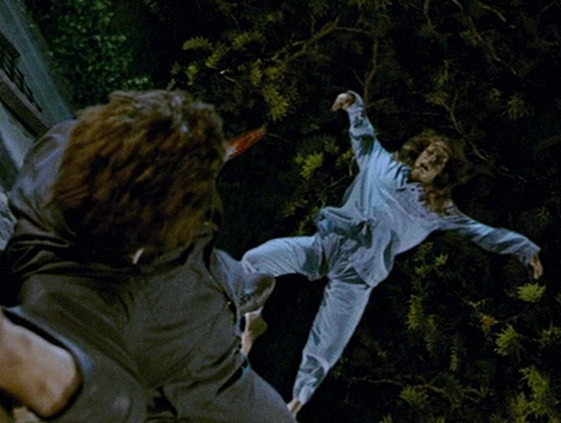 - Halloween: Michael is shot a few times, knifed in the chest, falls off of a second story balcony, and then is shot in the face. He is revealed to have survived in the sequel.